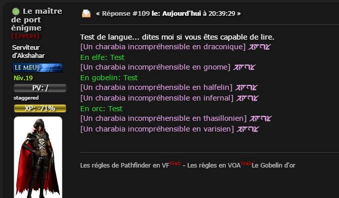Ah mais oui je suis entièrement d'accord, après ce point étant peu développé dans PF, le mot final revient au MJ :up:Oui d'autant plus que c'est lui le maitre instigateur :))