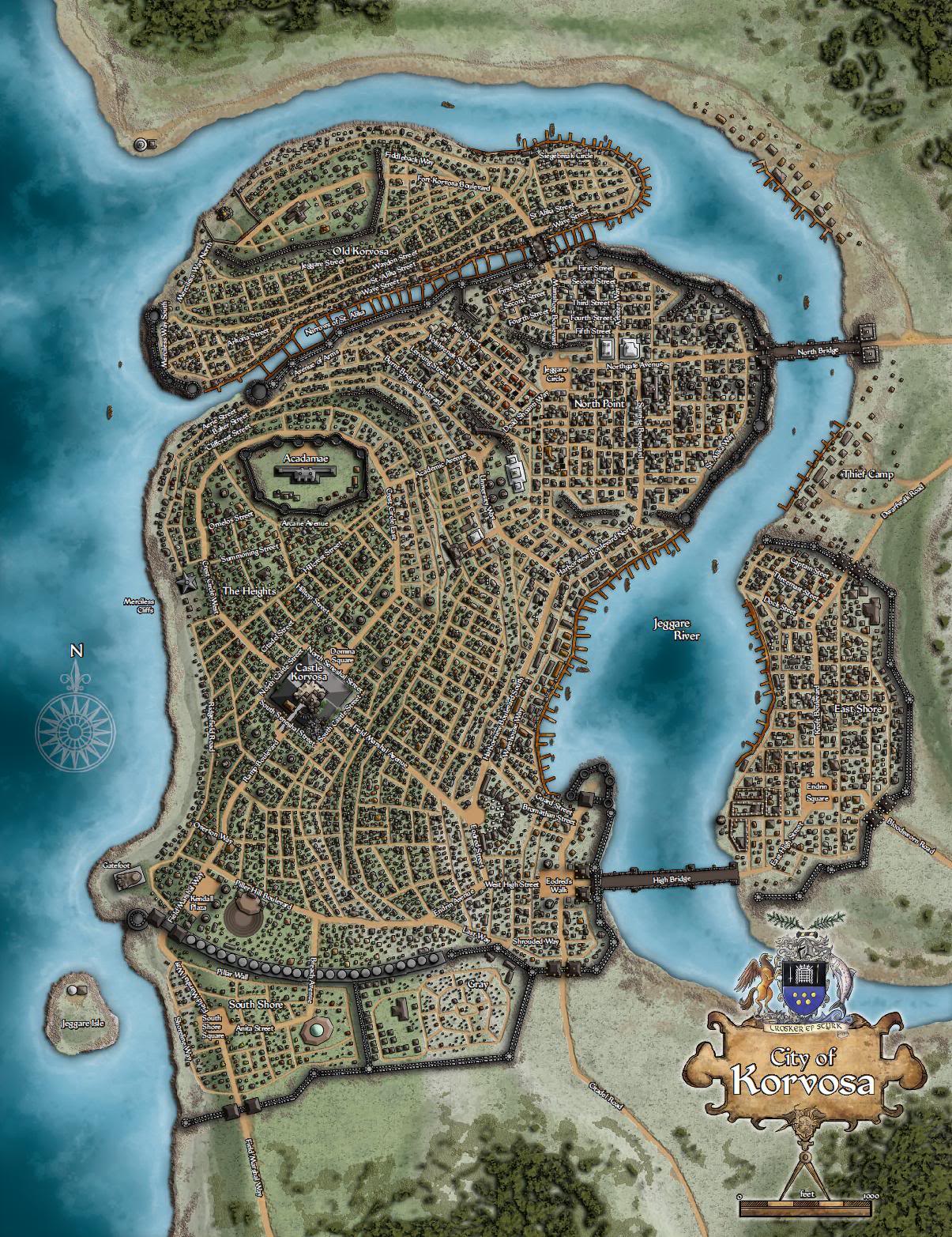 Les informations qui suivent sont connues de tout membre de la Compagnie Sable ou de l'Académie Militaire et accessibles avec [Connaissance Locale DC 15 (habitants de Korvosa)] ou [Connaissance Locale DC 25] ou [Connaissance Géographie DC20]