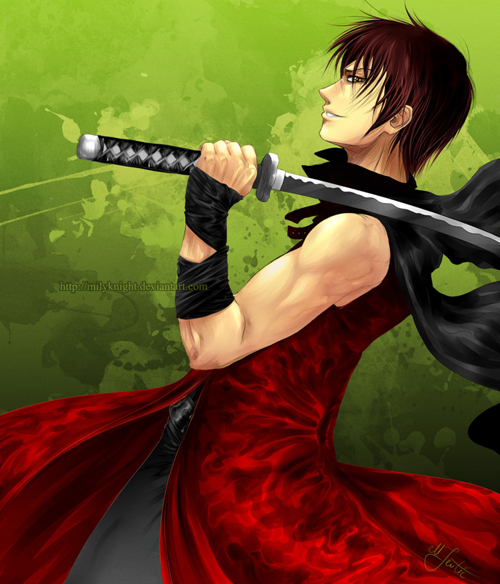 J'ai l'impression ensuite que les mouvements des trois hommes s'accélèrent, mais c'est en fait mon pouvoir qui s'est arrêté, n'ayant pas assez  d’expérience pour le maintenir plus longtemps. Cela ne m'empêche pas de me ruer sauvagement sur ces trois hommes et d'en mettre un de plus hors d'état de nuire. Les deux hommes restant se jettent sur moi mais ne m'atteignent pas car j'ai rapidement fait un bond en arrière pour finalement me relancer vers un des deux hommes et l’assommer de douleur en touchant un nerf avec mon katana sans le faire exprès. Le dernier homme apeuré tente de frapper plus encore mais, il a totalement perdu son calme et n'est pas apte a me toucher, je me lance alors une fois de plus et le blesse.